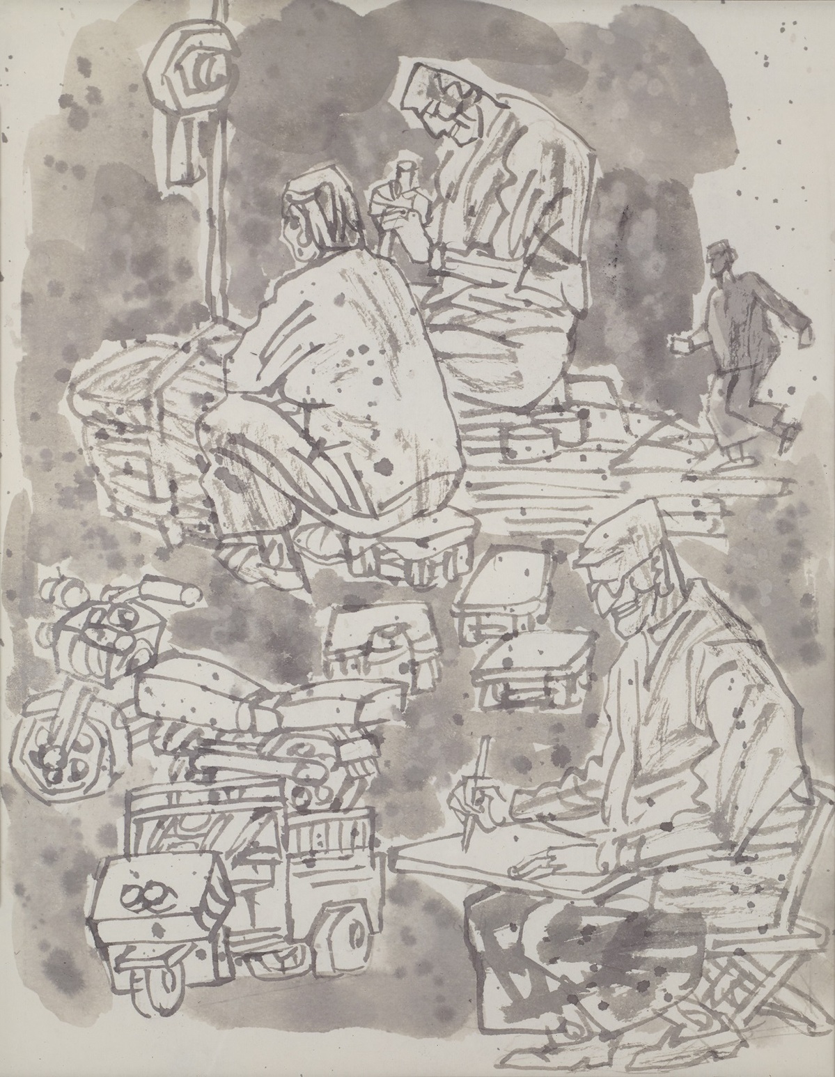 An ink sketch by Yang Xiaoyang. [Photo provided to China Daily]