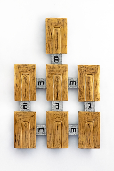 Installations combining traditional Chinese lacquer and other materials by French artist Vincent Cazeneuve are shown in the exhibition, Wandering, at Galerie Dumonteil in Shanghai.[Photo provided to China Daily] |
