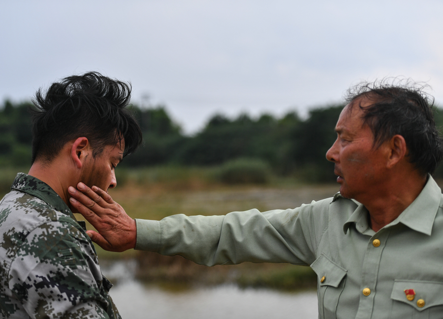 Xingang town has been one of the hard-hit areas in this summer's flood season. Although Chen has long retired, he decided to join the flood fighting team with his son Chen Jian who works in the local government. The father and son are mainly responsible for guarding the Dongsheng Embankment and assisting the town officials in dealing with flood situations.