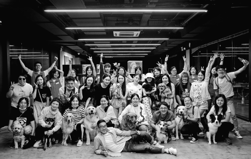 Wu Qi (front in the above picture), the founder of Paw for Heal, poses for a group photo at the end of an animal-assisted therapy event in Shanghai.[Photo provided to China Daily] |