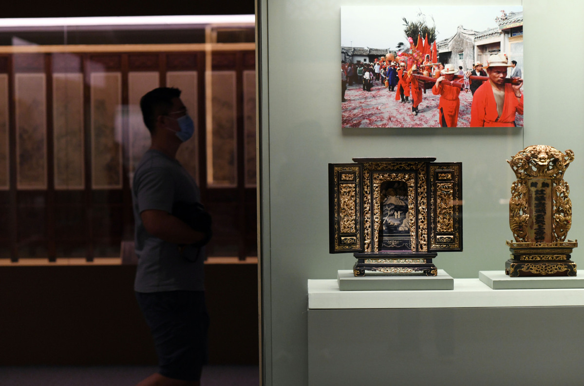 An exhibition on Chaozhou wood carving currently ongoing at the National Museum of China offers visitors a glimpse into the ancient art form and its artistic value.[Photo/Xinhua]