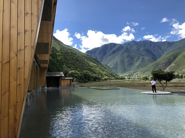 A visitor stands outside the boutique hotel cofounded by He Xinhai and Liu Zhigang.[Photo by Yang Yang/China Daily] |