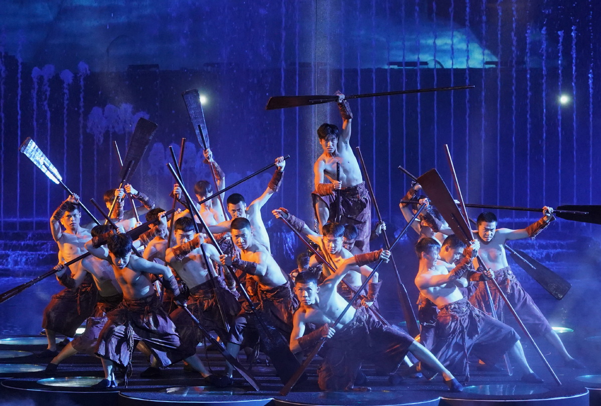 Actors rehearse an outdoor performance in Qinhuangdao, North China's Hebei province, July 26, 2020. This outdoor performance in rehearsal is expected to become a new attraction here.[Photo/Xinhua]