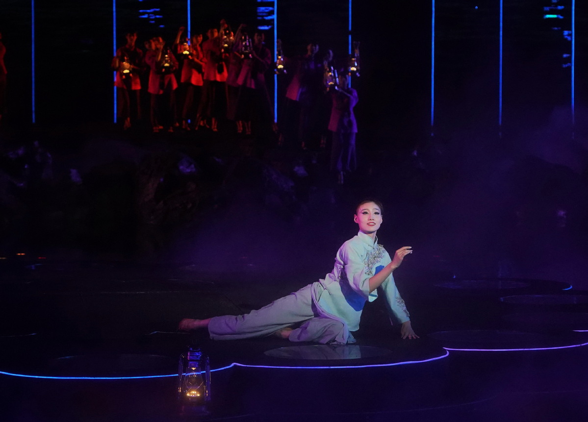 An actress rehearses an outdoor performance in Qinhuangdao, North China's Hebei province, July 26, 2020. This outdoor performance in rehearsal is expected to become a new attraction here.[Photo/Xinhua]