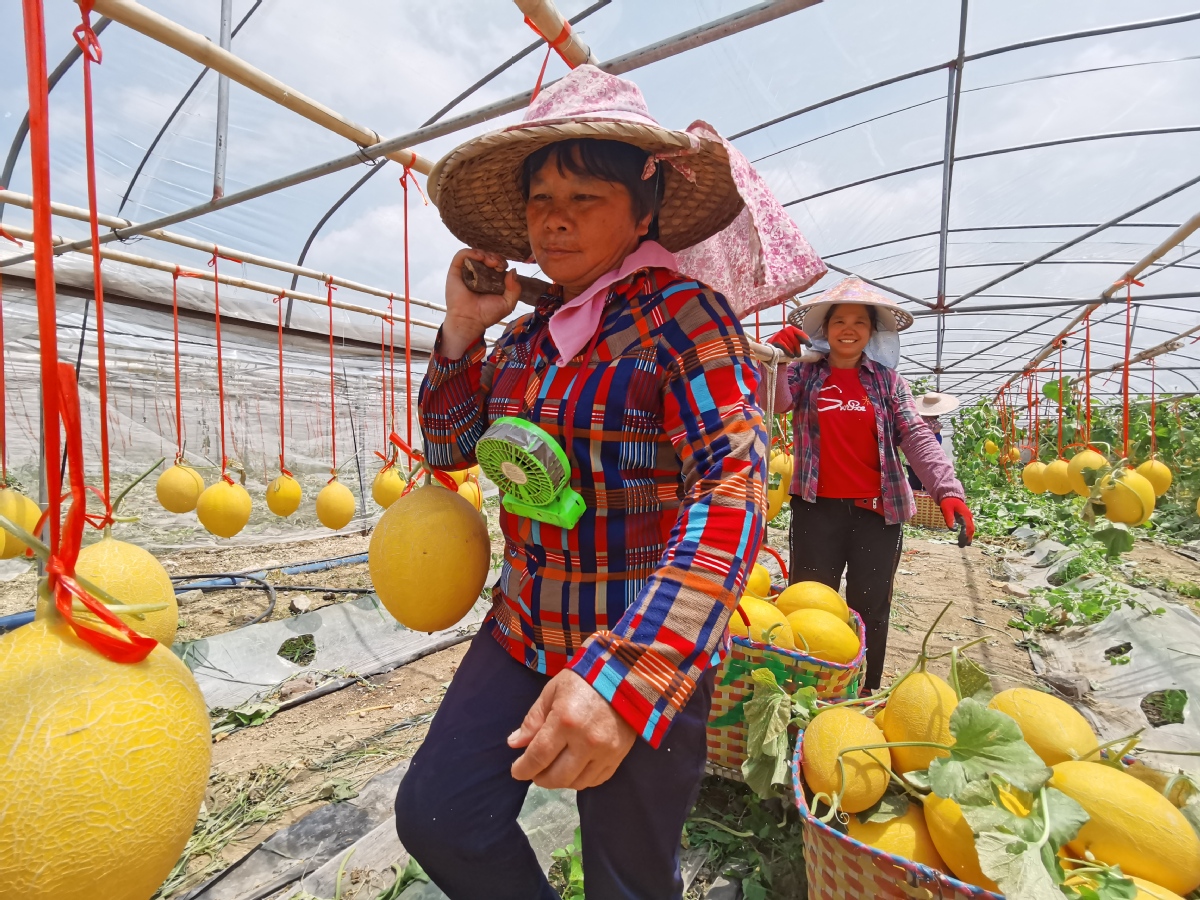 Farmers harvest cantaloupes in Wuxuan county, Laibin, Guangxi Zhuang autonomous region. [Photo by Shi Ruipeng/China Daily]