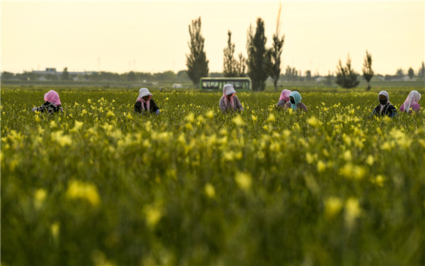 Su makes 2 yuan (about 28 US cents) for every kilo of flowers she picks, bringing home about 100 yuan every day.