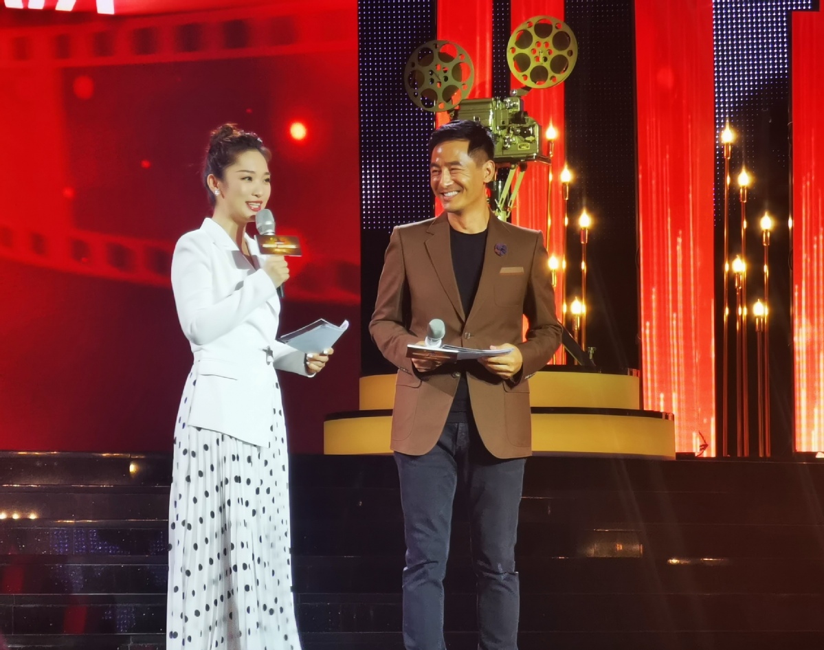 Actor Guo Xiaodong (right) shares his childhood memory of outdoor screenings in the program's launching ceremony in China National Film Museum on July 29. [Photo by Xu Fan/China Daily]