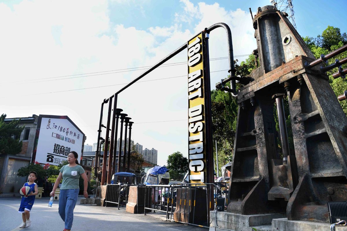 People visit the Yangtze River 180 art district in Hefei, East China's Anhui province, Aug 4, 2020. The Yangtze River 180 art district, a cultural and creative industry park, is transformed from old industrial plants and provides creative office space and leisure destinations.[Photo/Xinhua] |
