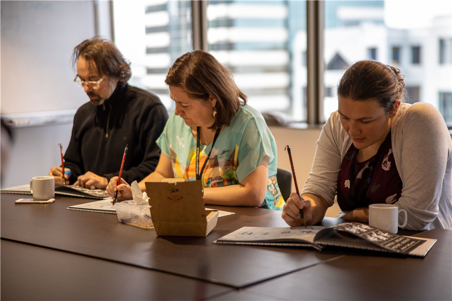Students take Chinese calligraphy courses after months-long suspension due to the COVID-19 outbreak. The Chinese Learning Seminar, organized by the China Culture Center in Wellington and the city government, reopened on July 31, 2020. [Photo provide to Chinaculture.org]