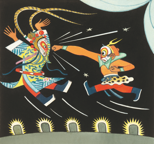 Moreover, Zhang's characters act vividly, showing the impact of posture, movement, costume and atmosphere derived from Peking Opera. The settings in the cartoon, such as the palace, lake, peach garden in heaven and the famous Huaguo Mountain and Shuilian Cave belonging to the monkeys, were inspired by Buddhist and Taoist architecture.