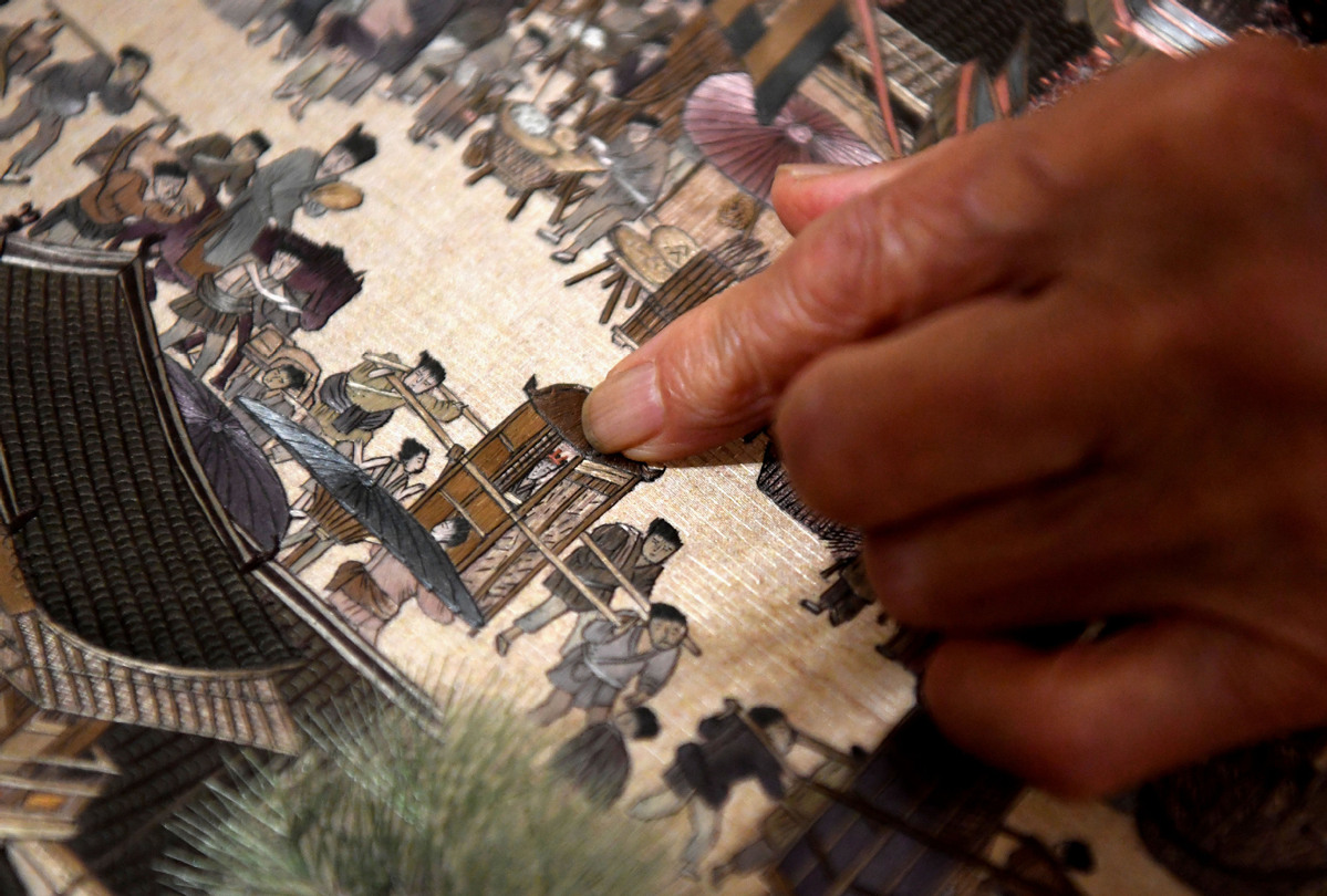 Wang points to places that need to be corrected to her students. [Photo/Xinhua]