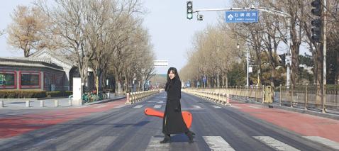 Yang walks across an empty street in Beijing in 2019. The experience of touring worldwide has given her a new perspective on her own cultural background. [Photo provided to China Daily] |