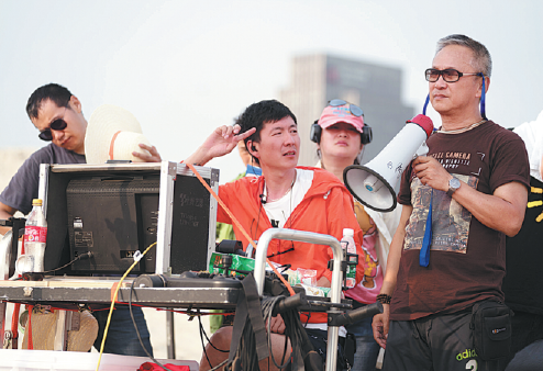 Director Teddy Chen Tak-shum (right) on set during the filming of Double World. CHINA DAILY