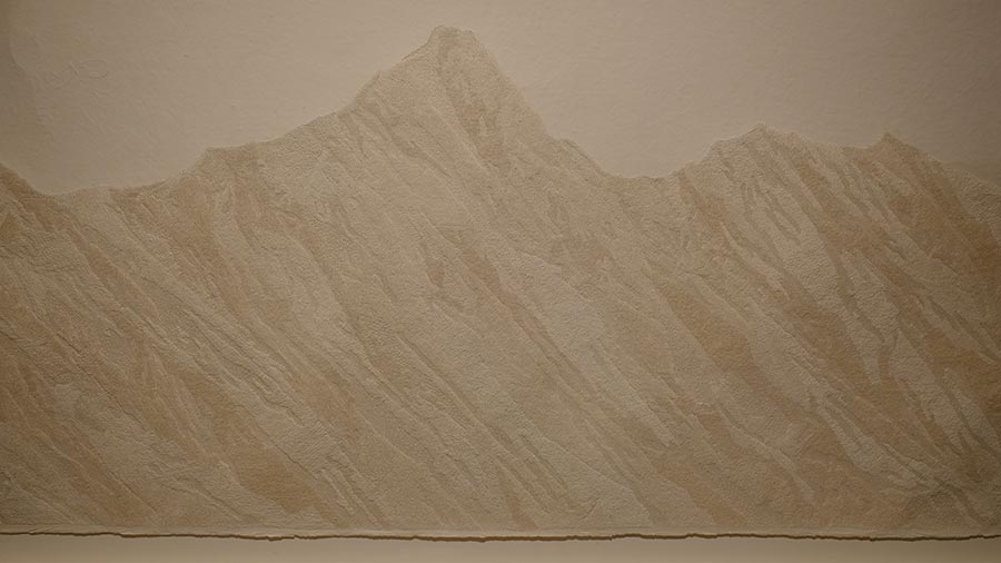 Artist Fu Xiaotong’s 254,560 Holes is on show at the Today Art Museum in Beijing on July 25, 2020. She pierced nearly half a million holes in a piece of handmade Xuan paper, evoking an imposing mountain image of the Chinese ink landscape. [Photo by Yang Xiaoyu/chinadaily.com.cn] |