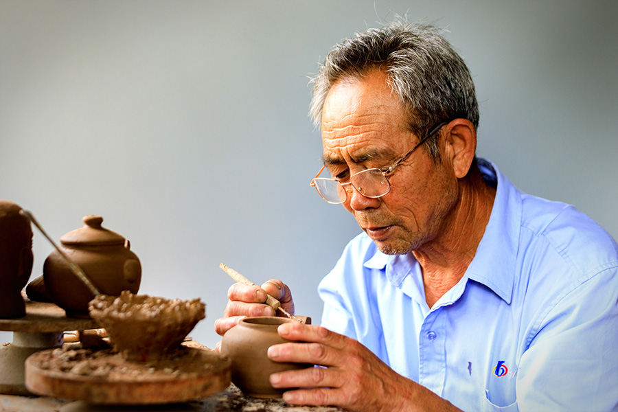 An artist hand-crafts black pottery in Dongying. [Photo provided to chinadaily.com.cn]