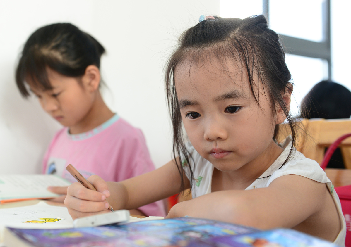 Childewn read books at a library in Shucheng county, Anhui province on Aug 13, 2020. The county library has become a popular hub for citizens to cool down and immerse themselves into books. The number of daily visitors to the county library has reached over 5,000.[Photo/Xinhua] |