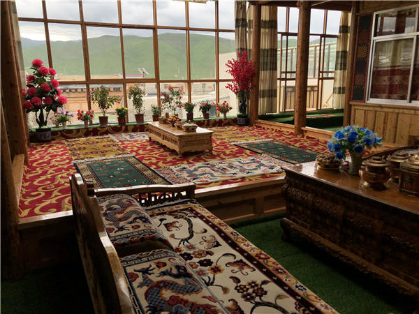 A typical Tibetan-style guesthouse newly remodeled in Heiliningba village. [Photo by Yang Yang/China Daily] |