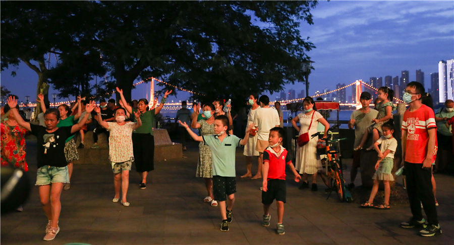 Under the Wuhan Yangtze River Bridge, a steady stream of people can be seen along the riverbank from evening to late night, enjoying the coolness, singing or dancing. Many newlyweds leave their footprints in front of the landmark Hankow Customs House, taking photos to mark the occasion of the revived dynamism in the metropolis.