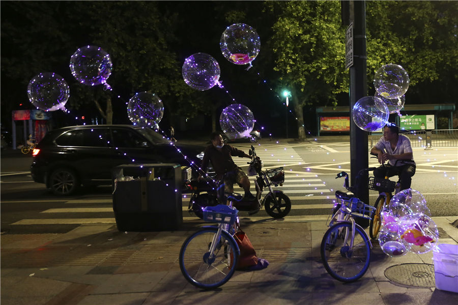 Ballon vendors under the Wuhan Yangtze River Bridge [Photo by Wu Xiaohui/China Daily] |
