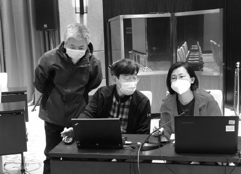 Jiang Li (right) consults with other doctors and experts in Wuhan, Hubei province. [Photo provided to China Daily] |