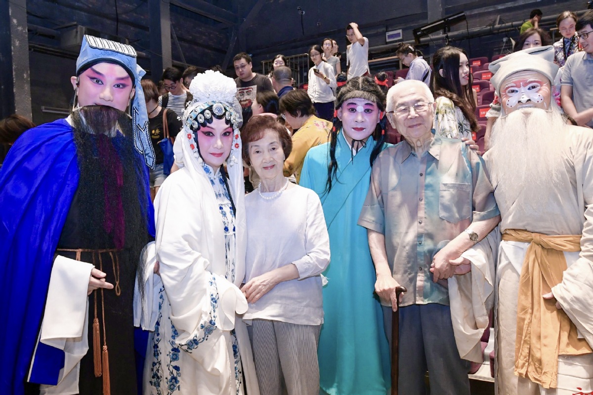 Performers with the famous Kunqu Opera actress Shen Shihua and scholar Niu Biao at Langyuan Vintage Creative Art Zone. [Photo provided toChina Daily] |