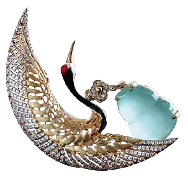 Crane brooch with 18K gold, jade and diamonds, KaKa's Gem Eyes [Photo provided to China Daily]