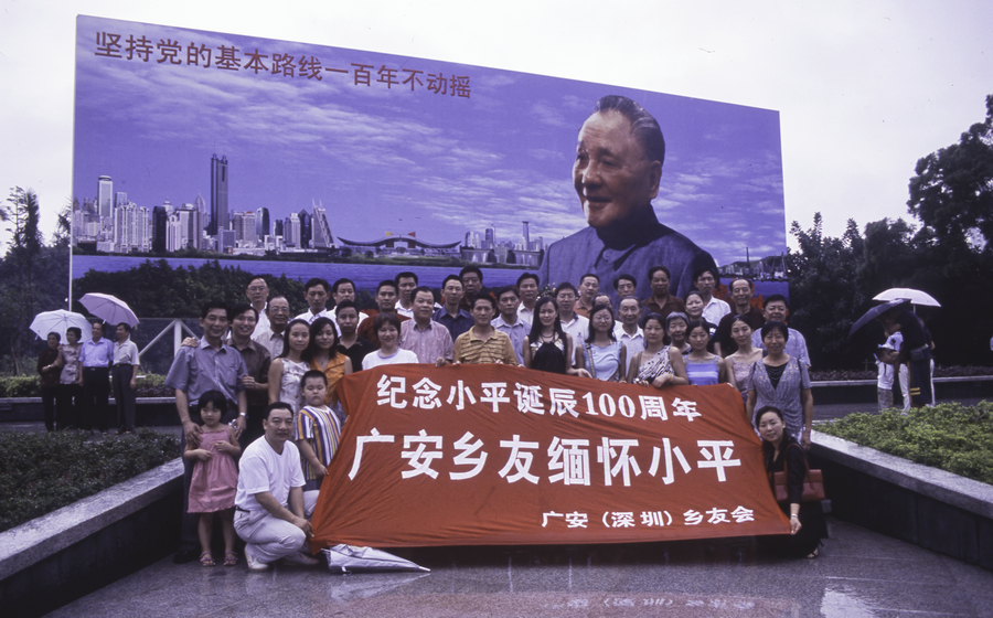 In 2004, people gathered for a group photo in front of Deng Xiaoping's portrait to commemorate the 100th anniversary of Deng's birth. ZHOU SHUNBIN/FOR CHINA DAILY |