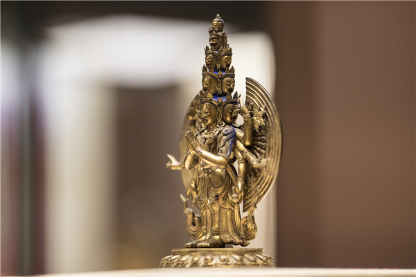 The late 20th-century author and scholar Shen Congwen developed an authority on the study of ancient Chinese attire. He once donated four vintage Tibetan thangka paintings from his own collection to the Central Academy of Arts and Design, which are now in the collection of the Tsinghua University Art Museum. They're currently on show at Auspicious Land, an exhibition of Tibetan Buddhist paintings and sculptures that's running through Oct 25. It displays 38 thangka paintings from the Tsinghua University Art Museum's roughly 13,000 works. The scrolls are displayed in juxtaposition with dozens of gilt-bronze Tibetan Buddhist statues on loan from the Capital Museum in Beijing.