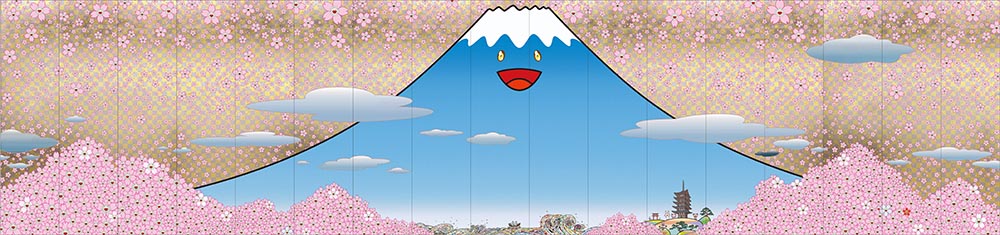 Takashi Murakami, Cherry Blossoms Fujiyama Japan, 2020, acrylic on canvas, 500 x 2,125cm. [Photo provided to China Daily] |