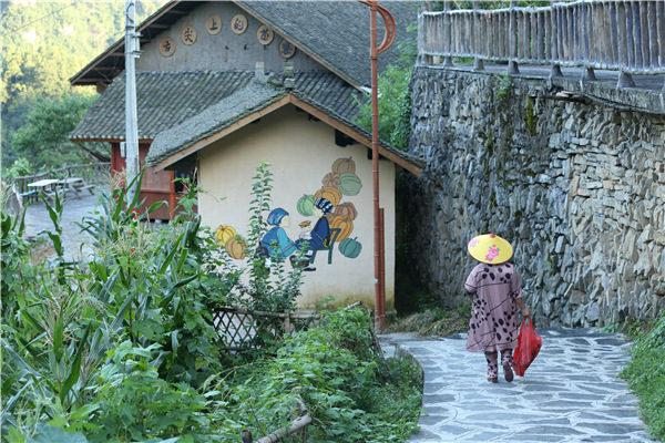The steep, winding narrow lanes in Shibadong can be a challenge for those who live in less-mountainous areas, but for the local villagers it is taken in stride. [Photo by Zi Hao/China Daily] |