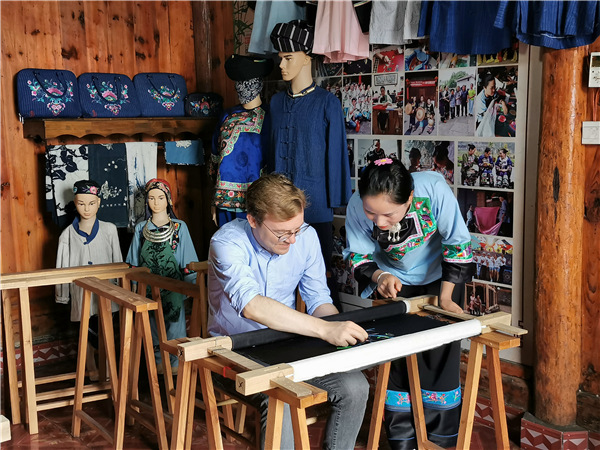 Traditional Miao embroidery, known as miaoxiu, has become a bustling local industry in Shibadong. [Photo by Zi Hao/China Daily] |