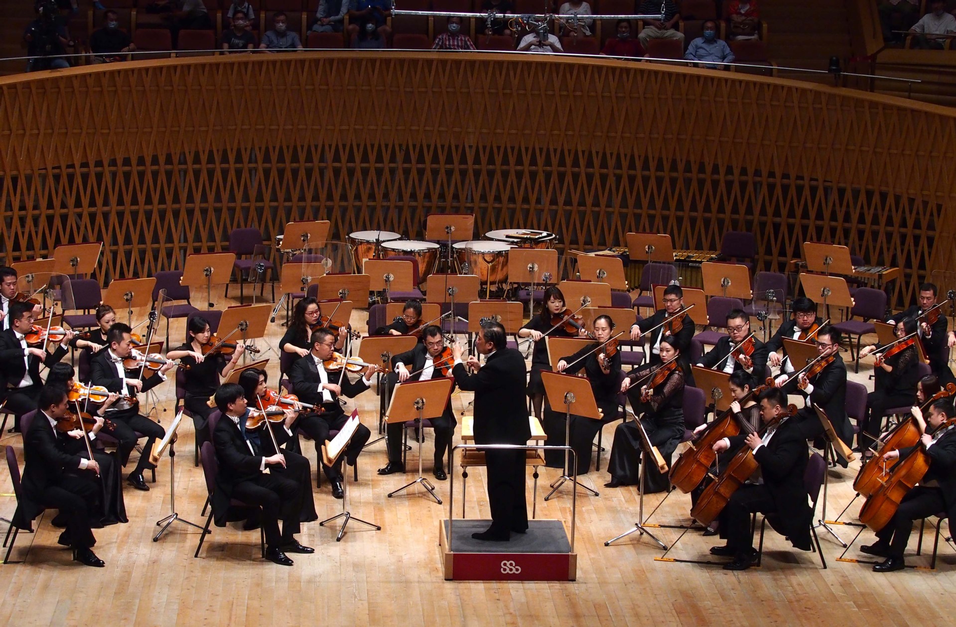 A concert is held on Sept 1, 2020, at the concert hall of the Shanghai Symphony Orchestra to mark the beginning of the 2020-2021 music season.[Photo/Xinhua]
