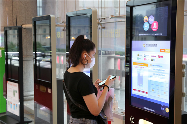 A film attendee gets her ticket from an automatic machine after booking it online. [Photo by Xu Congjun/For China Daily] |