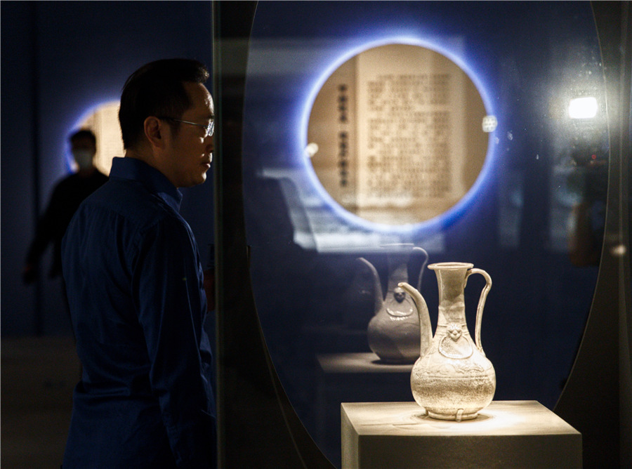 A Sail Over Miles, an ongoing exhibition at the National Museum of China in Beijing, displays over 300 ceramic relics, including a pot excavated from the wreckage of Nanhai No 1, a Chinese cargo ship dating back more than 800 years. [Photo by Jiang Dong/China Daily]