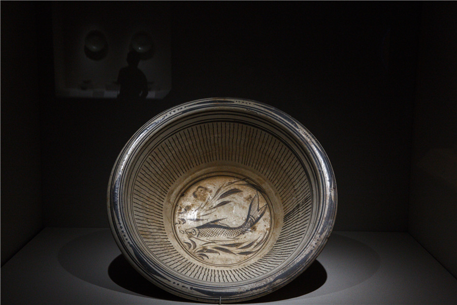 Highlights of the Beijing exhibition include a Yuan Dynasty (1271-1368) basin. [Photo by Jiang Dong/China Daily] |