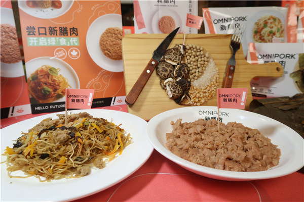 Dishes made from plant-based meat are available in some Chinese markets. The artificial meat is promoted as it's good for health and the environment. [Photo by Xing Yi/China Daily] |
