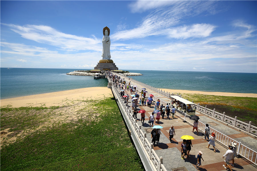 Visitors tour the Nanshan scenic area in Hainan's Sanya. [Photos provided to China Daily]