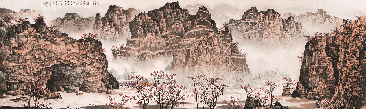 Juemahe in Fall, a painting by Bai Xueshi on show. [Photo provided to China Daily]