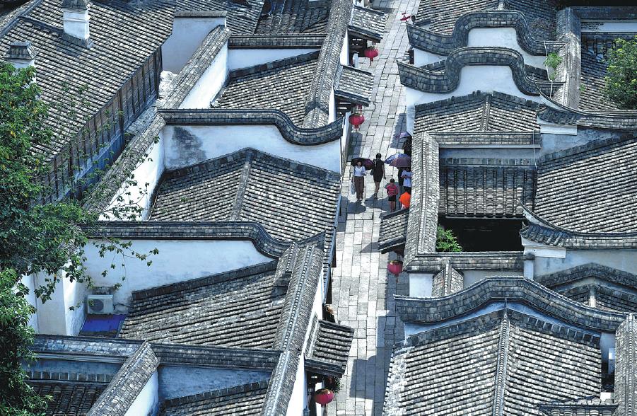 A bird's-eye view of Sanfang Qixiang in downtown Fuzhou, Fujian province. [Photo by Wang Dongming/China News Service]