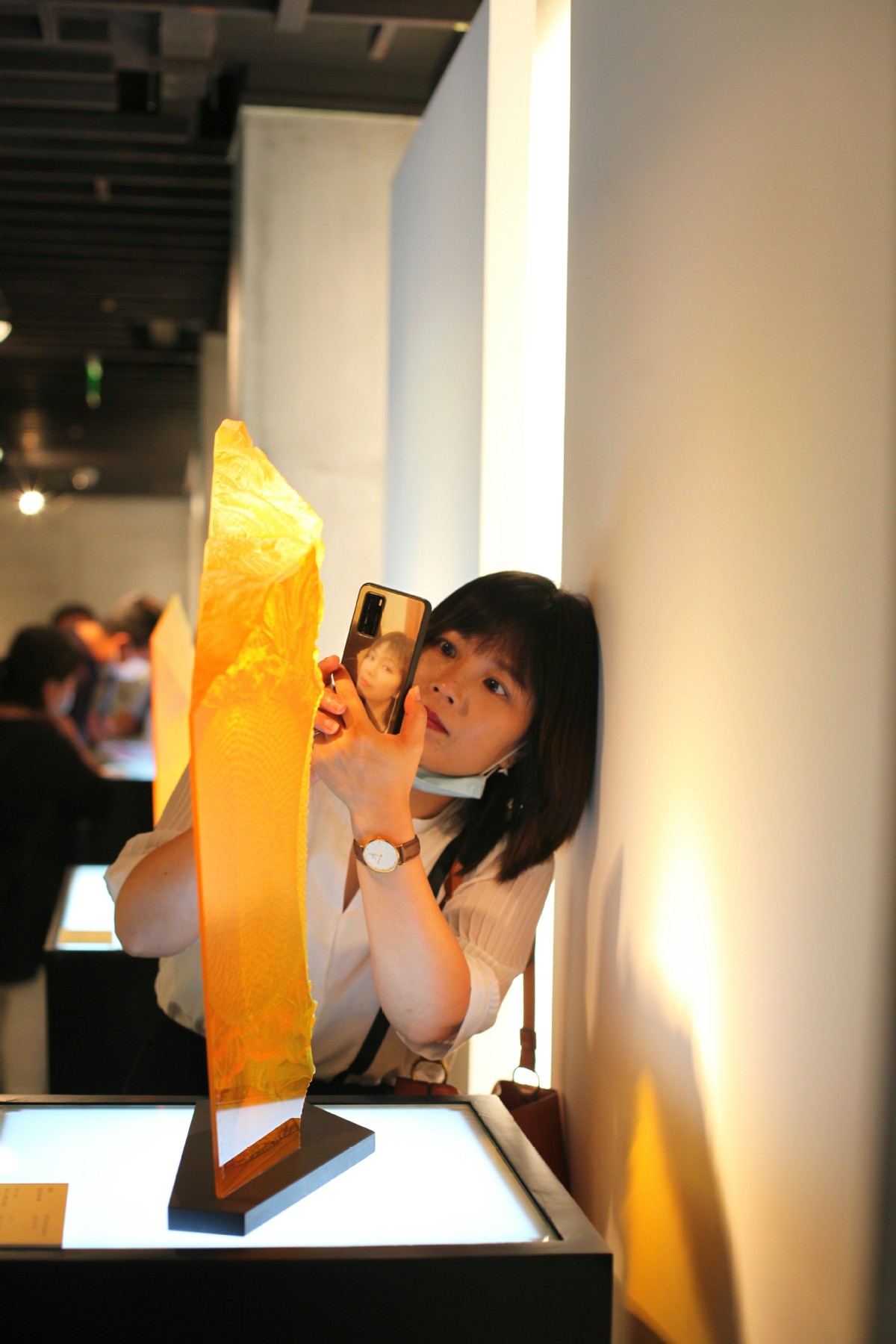 An ongoing exhibition at Liuli China Museum in Shanghai, "A Thread of Light — Colin Reid With 3 Generations of British Kilncast Glass Artists", is now presenting a showcase of the development of glass art in Britain over the past 50 years. [Photo provided to China Daily] |