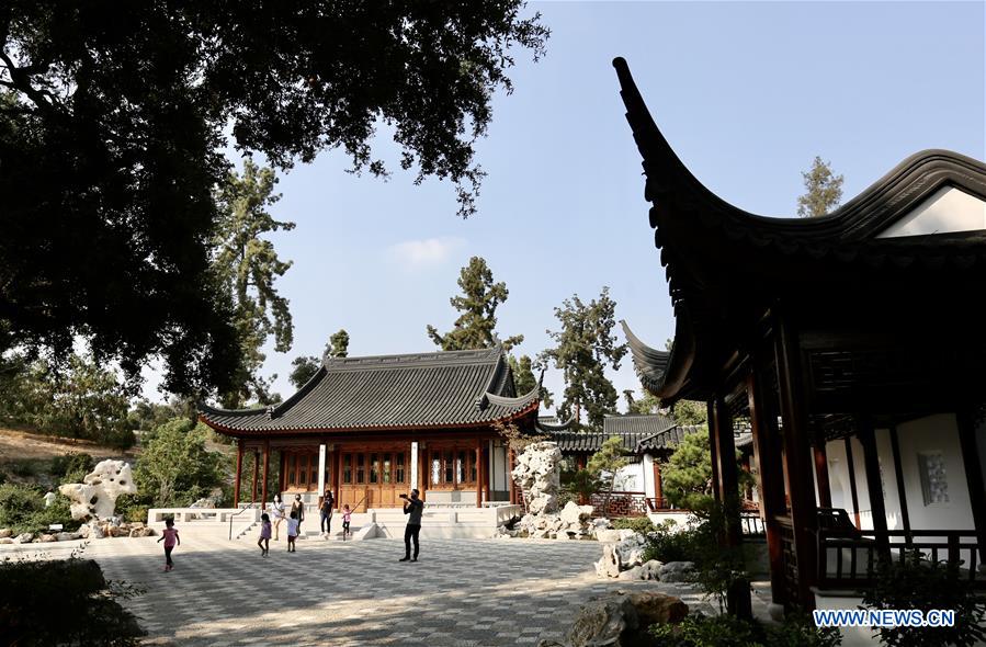 People visit the traditional Chinese garden Liu Fang Yuan, or the Garden of Flowing Fragrance, in Los Angeles County, California, US, on Oct 9, 2020. [Photo/Xinhua]