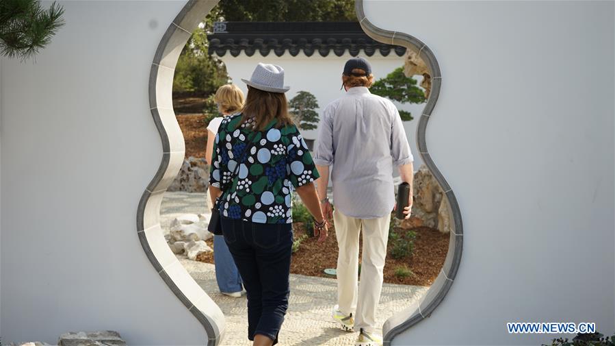 People visit the traditional Chinese garden Liu Fang Yuan, or the Garden of Flowing Fragrance, in Los Angeles County, California, US, on Oct 9, 2020. [Photo/Xinhua]