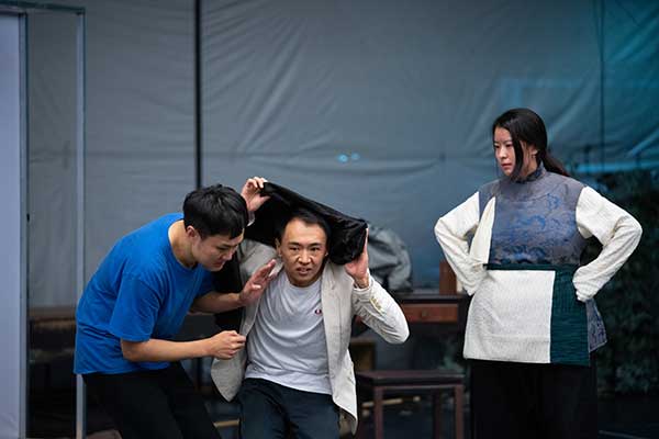 Performers rehearse for the upcoming play, Crossroads, which will premiere at the National Center for the Performing Arts from Oct 17 to 25 and will feature music performed by the NCPA Drama Ensemble.[Photo provided to China Daily] |