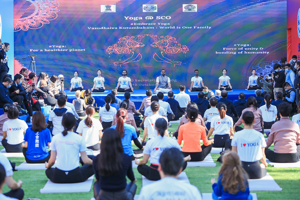 Chinese tai chi and Indian yoga met at a news conference on Shanghai Cooperation Organization Cultural and Sports Events for 2020-21 in Beijing on Sunday. The two performances, by students from Beijing Sport University and the Indian embassy in China respectively, showcased the vitality of two ancient civilizations and their charm.