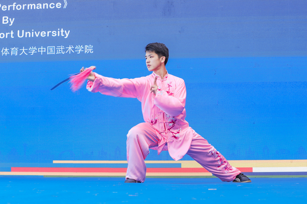 A tai chi performance by a student of Beijing Sport University at the conference.[Photo provided to China Daily] |