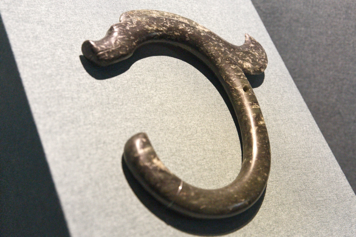 A jade dragon on show. [Photo by Jiang Dong/China Daily]