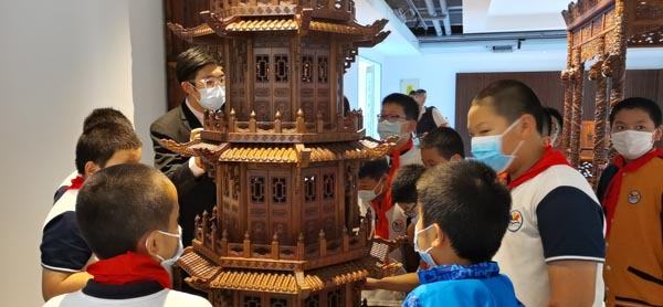 Young visitors get up close with the exhibits at the Beijing Tianzhu Huanghuali Art Museum. [Photo provided to China Daily]