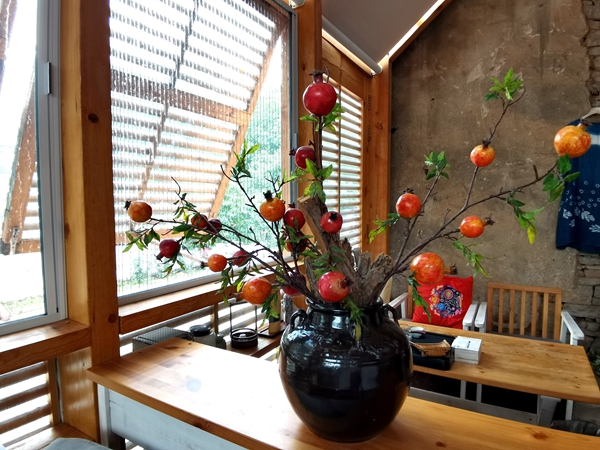 Old farmhouses are transformed into cafes.[Photo by Cheng Yuezhu/China Daily]