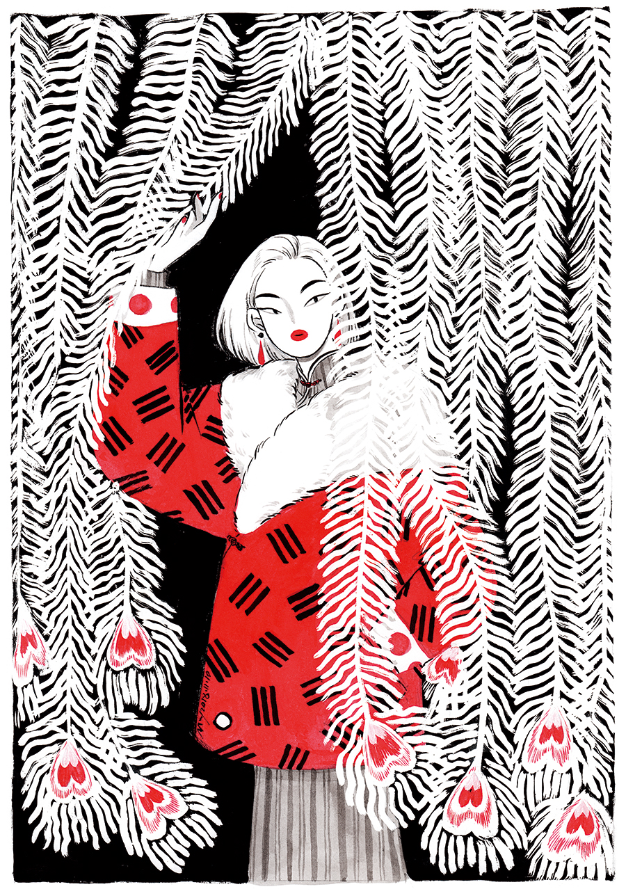 One piece from Chen's  Red and Black series which was showcased at a landmark department store in Milan, Italy, in January. [Photo provided to China Daily]