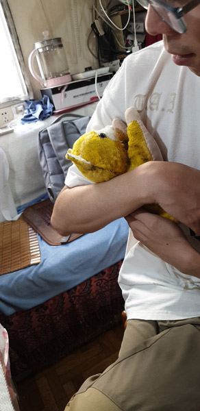 A customer is reunited with his repaired toy tiger. [Photo provided to China Daily]